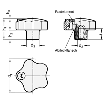 Sicherheits-Sterngriffe GN 5337.8, verhindern das Lösen durch unbefugte Personen. Die Form des Steckschlitzes (entspricht dem Steckprofil des Schlüssels) erschwert das Eindringen von Fremdkörpern. Der Sicherheits-Sterngriff kann auch im Außenbereich eingesetzt werden. Der Schlüssel Form CSN kann umgelegt werden, damit das Lösen oder Spannen bei gestecktem Schlüssel weniger behindert wid.